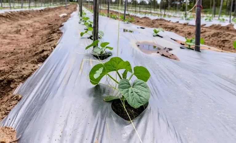 Пленка для мульчирования почвы широко применяется в сельском хозяйстве, при правильном применении оказывая положительное воздействие на почву и растения. Такая черно белая сохраняет в почве воду, помогает уменьшить число сорняков, исключает перегрев почвы летом и промерзание зимой, предупреждает эрозию почвы, сохраняет ее рыхлость, а также предотвращает образование корки на почве, что улучшает впитывание воды. С использованием пленки замульчированные растения образуют больше придаточных корней.